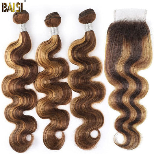 BAISI #4mix27 Highlight Body Wave Bundles with Closure / Frontal