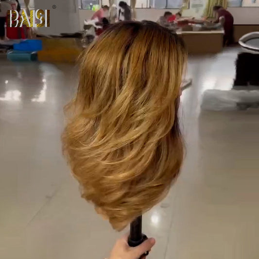 BAISI 250% Density Honey Blode With Dark Root Lace Wig