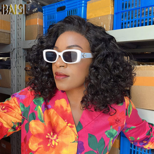 BAISI 250% Density Brown Bouncy Wavy BoB Wig