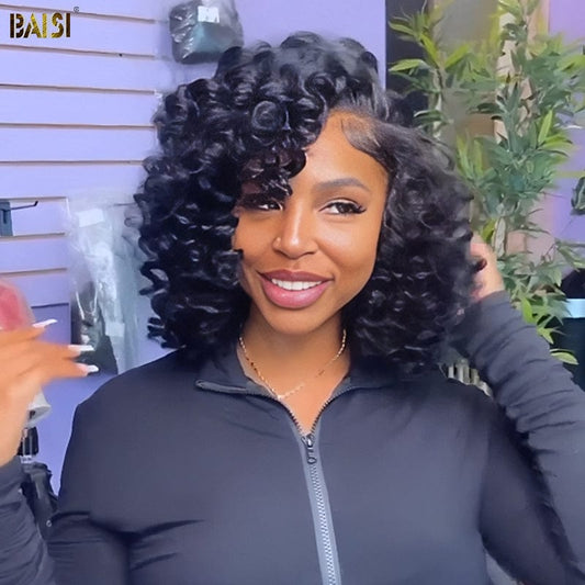 BAISI Fashion Side Part Bouncy Curl BoB Wig