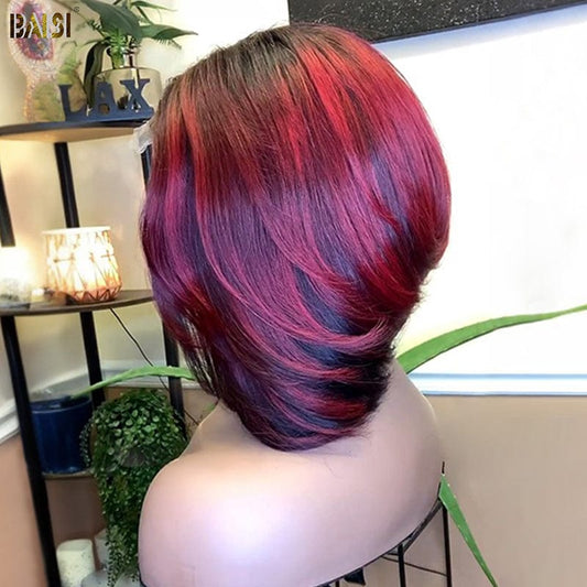 BAISI Sexy Side Part With Red Highlight BoB Wig