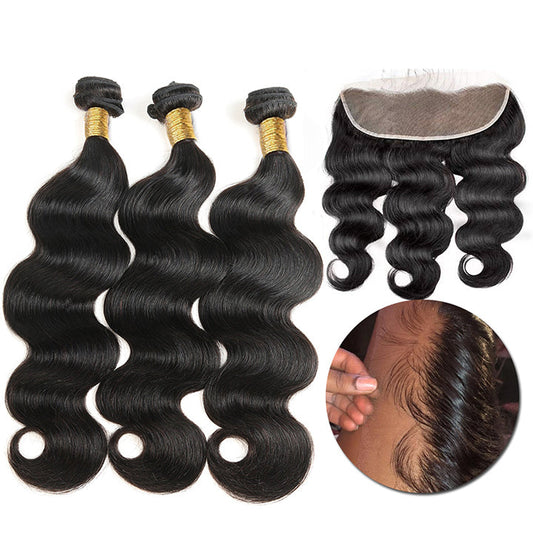 Body Wave Hair 3 Bundles With 13x4 Frontal Single Invisiable Knots Human Hair Bundles With Lace Frontal