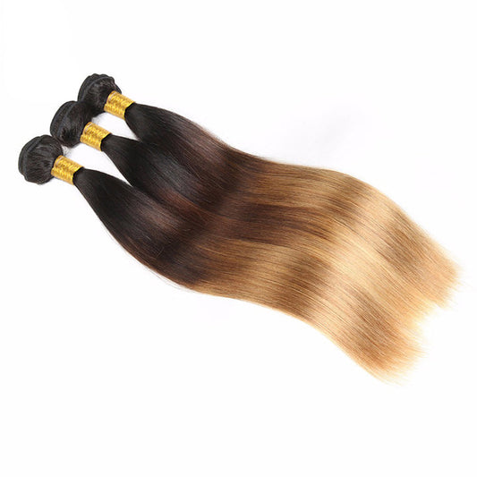 Blonde Human Hair Bundles With Closure 3 Bundles With Lace Closure T1B/4/27 Ombre Blonde Brazilian Straight Hair