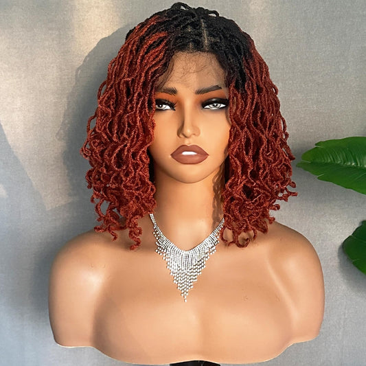 Dreadlock Wig Curly 4x4 Lace Frontal Ombre Strawberry Blonde 16 Inch Twist Faux Locs Wigs for Balck Women Afro Curly Braided Synthetic Wig