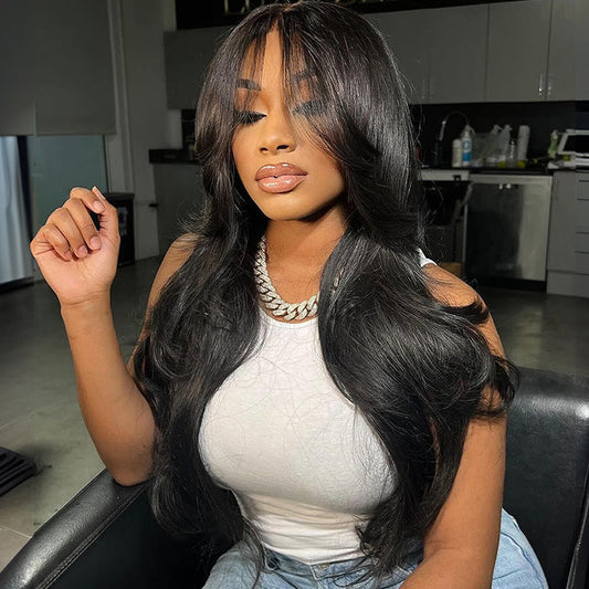 Face-Framing Curtain Bangs Wavy Wig 6x5 Ready To Go Glueless Lace Wig Pre Cut Lace