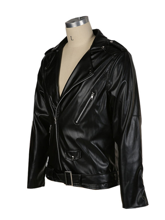 European And American Men's Turtleneck Leather Jacket Plus Size Slim Motorcycle Leather Jacket