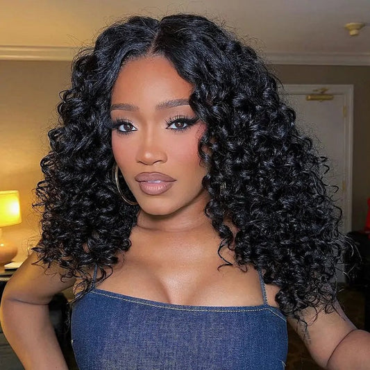 Fluffy Bouncy Curl Wigs Gluless Wig 13x4 Pre Cut Human Hair Wigs Pre Bleached Hairline