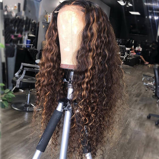 Highlight Curly Lace Front Wigs 13x4 Colored Glueless Brazilian Human Hair Lace Wigs