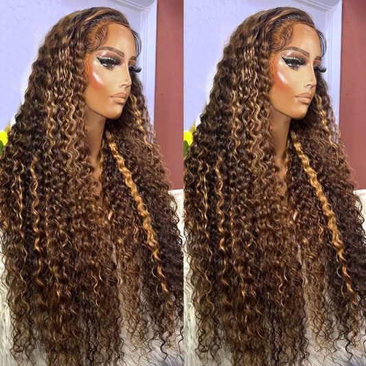 Highlight Honey Blonde Curly 13x4 Lace Front Wig HD Lace Glueless Human Hair Wigs