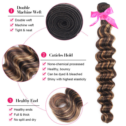 Highlight Bundles Deep Wave Weave Human Hair 10A Grade