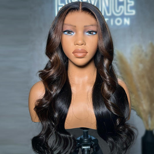 Highlight Brown Mixed Black Color Wavy 5x6 Pre Cut Lace Glueless Wig Human Hair