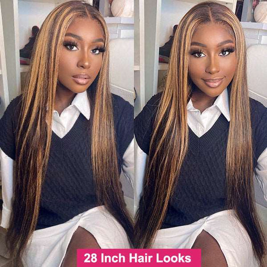 Highlight Brown Straight Frontal Honey Blonde 4x4 Lace Closure Brazilian Straight Hair 13x4 Lace Frontal Ombre Colored 100% Remy Human Hair