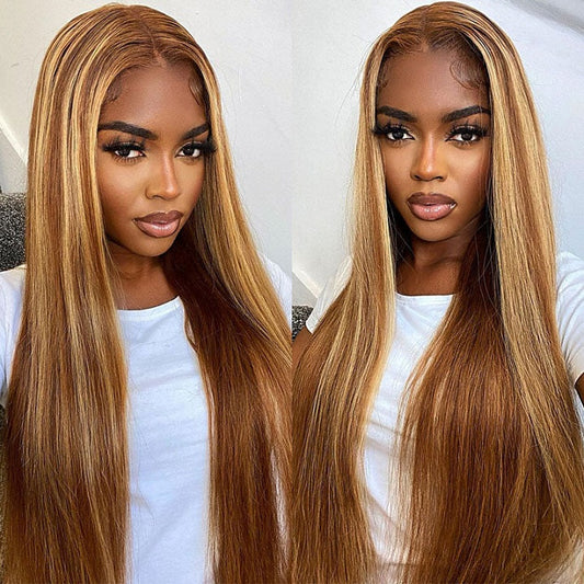 Highlighted Wigs 13x4 Loose Deep Wave Lace Front Wigs Brown Highlights HD Lace Wig