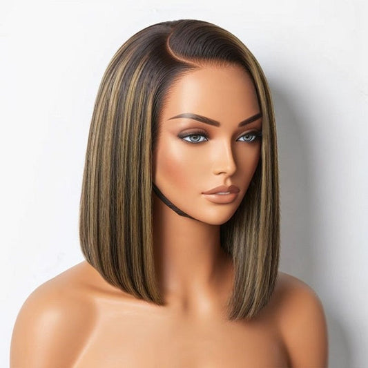 Highlights Honey Brown P4/27 Straight 7x5 Lace Bob Glueless Wig Human Hair