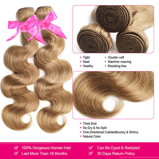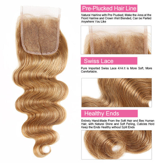 Honey Blonde Body Wave Bundles With Closure #27 Color Human Hair