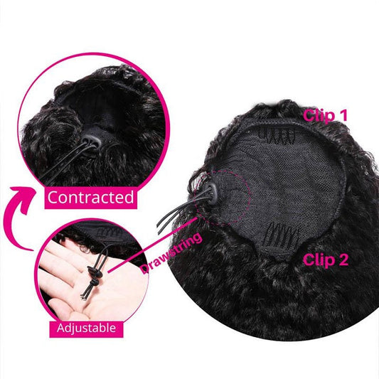 Kinky Curly Drawstring Ponytail Clip In Hair Extensions Brazilian Virgin Hair Afro Puff