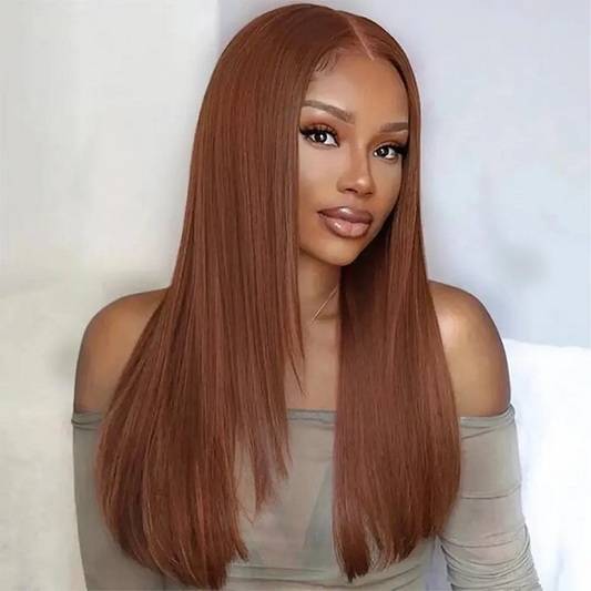 Layer Cut Straight Glueless Wig Copper Brown 5×5 Pre Cut Lace Wig