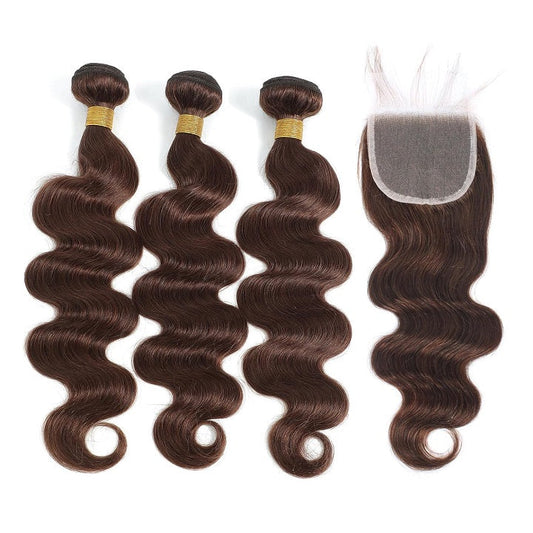 Light Brown Straight Human Hair 3 Bundles With 4x4 Closure #4 Human Hair Weave