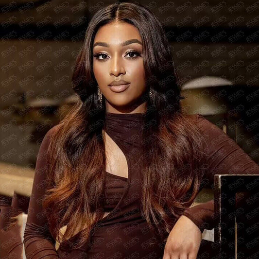 Long Layered Curtain Bangs with Rich Honey Brown Ombre Wavy 9x6 Pre Cut Lace Wigs