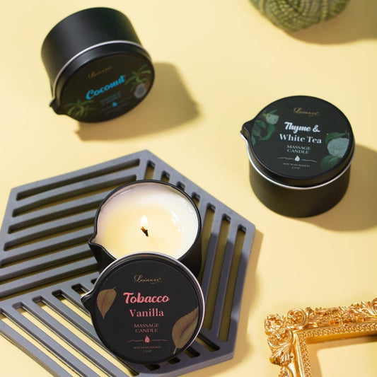 Massage Oil Candle 3 Pack,Coconut Oil Based-Daily Moisturizing Body Oil Relaxing-Natural Therapy Oil Scented Candle-6.9OZ
