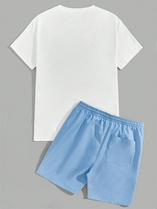 Manfinity EMRG Men Bear Letter Graphic Tee Drawstring Waist Shorts