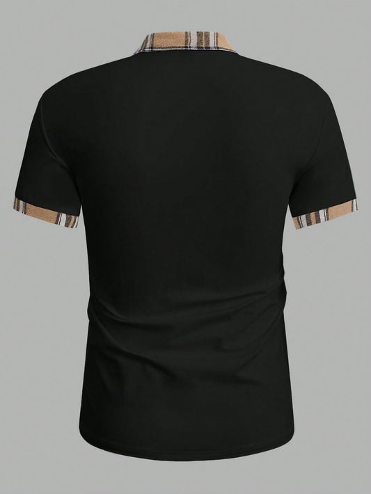 Manfinity Homme Men Contrast Plaid Collar Polo Shirt