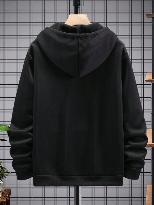 Manfinity Homme Men Patched Detail Kangaroo Pocket Drawstring Hoodie