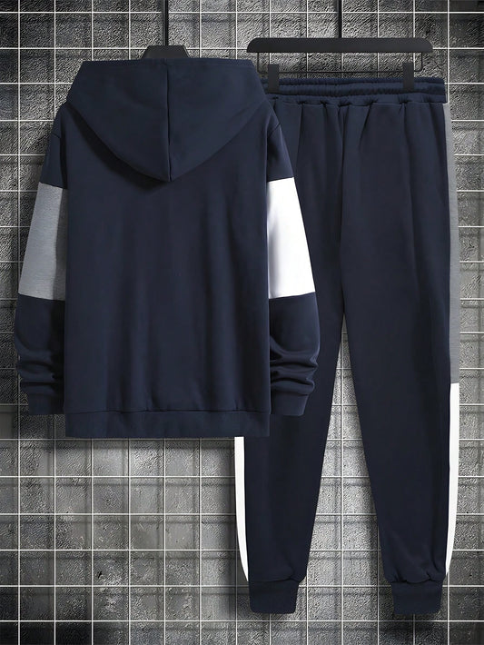 Manfinity Homme Men Plus Color Block Drawstring Hoodie & Sweatpants
