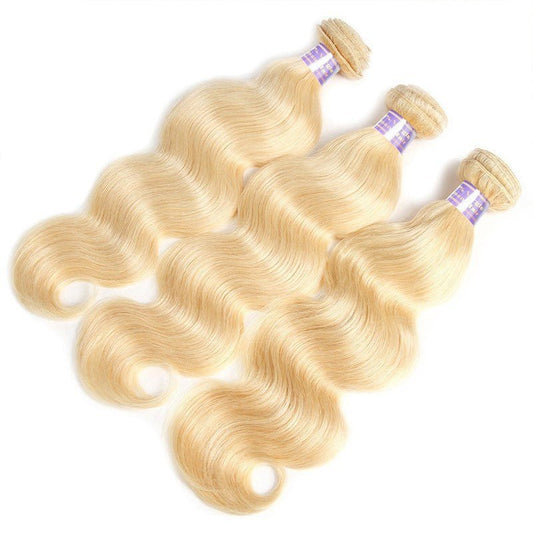 3 Bundles 613 Blonde Body Wave Human Hair With 4x4 Lace Closure