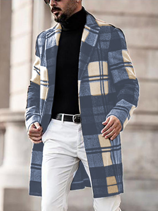Men's Casual Fashion Plaid Coat Mid Length Coat Coat