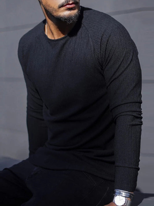 Men's Round Neck Long Sleeve Slim Solid Color Knitwear