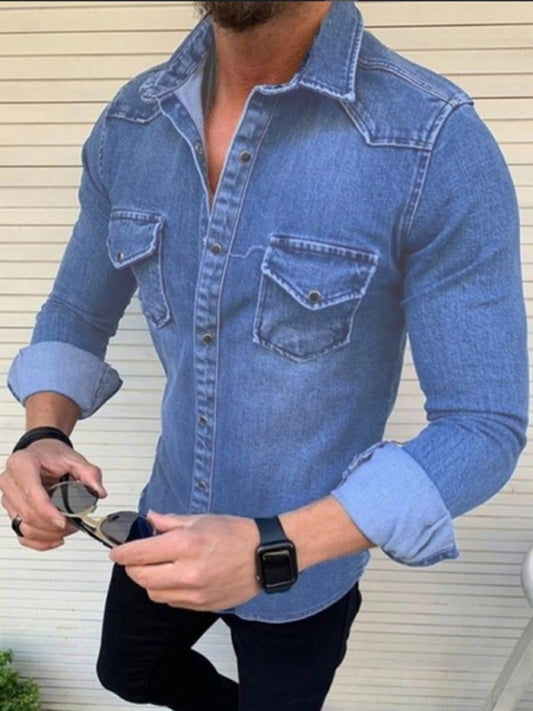 Men's solid slim fit long sleeve denim shirt