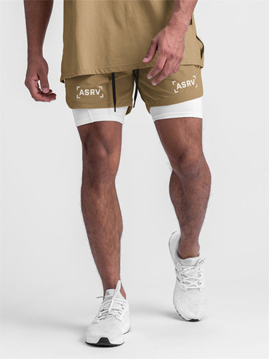Men's sports fake two-piece quick-drying double-layer basketball pants anti-slip five-point pants