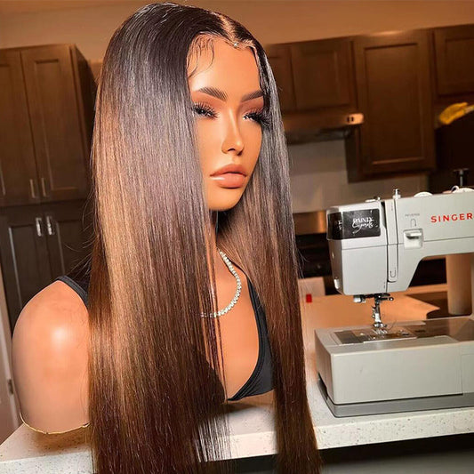 Ombre Chocolate Brown Straight 13x5 Pre Cut Lace Wig Pre Plucked Glueless Wig