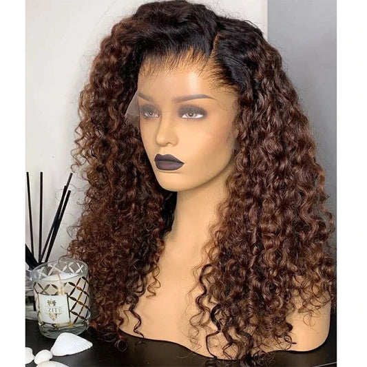 Ombre Dark Brown Crown Curly 13x5 Lace Front Wig Glueless Human Hair Wig