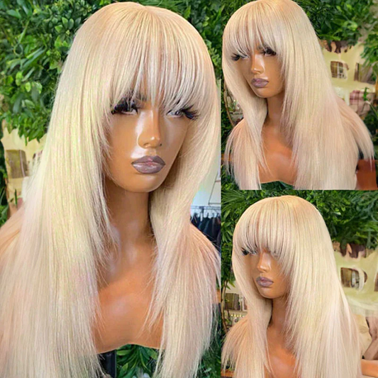 613 Blonde 13x4 Lace Wolf Cut Layered Straight Glueless Wig With Bangs Lightweight Human Hair Wig