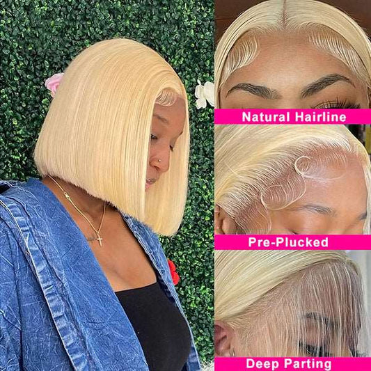 613 Blonde Bob Wigs Wear Go 13x4 Lace Front Wig Short Straight Bob Wigs