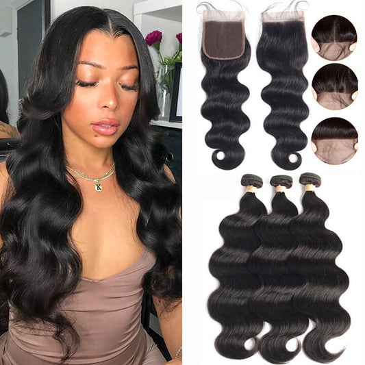 8-30 Inch Brazilian Body Wave 3 Bundles With Closure 100% Human Grade 9A Hair Extension