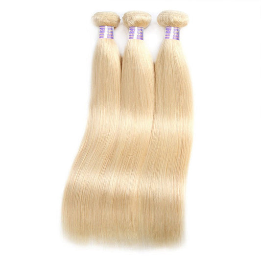 613 Blonde Straight Human Hair Weave 3 Bundles With Lace Closure