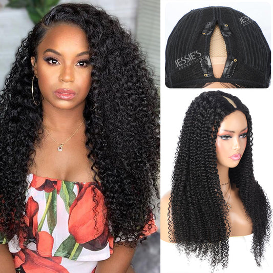 Thin V Part Wig Kinky Curly Natural Scalp Human Hair Wig Without Leave Out
