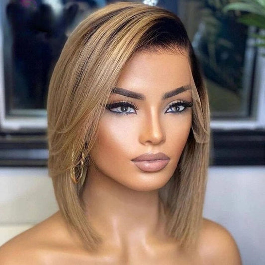 T1B/27 Straight 13x4 Lace Front Blunt Cut Bob Wig Ombre Honey Glueless Human Hair Wig