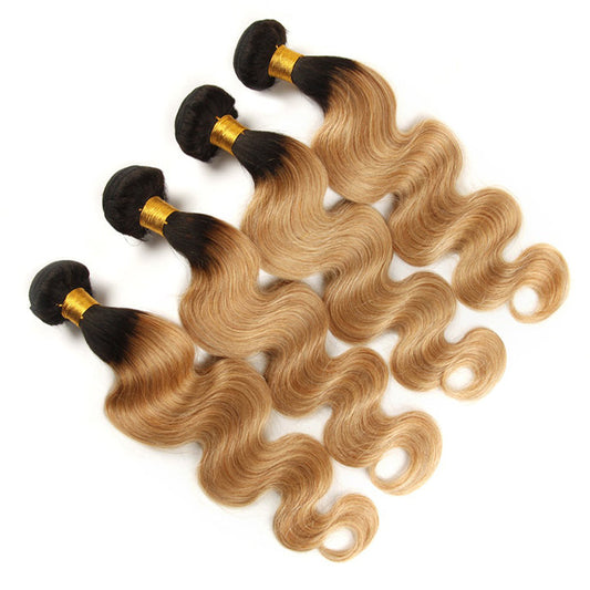 T1B/4/27 Body Wave Hair 3 Bundles With Closure Ombre Honey Blonde Human Hair