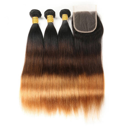 T1B/4/30 Straight Hair 3 Bundles With Closure Human Hair Weaves