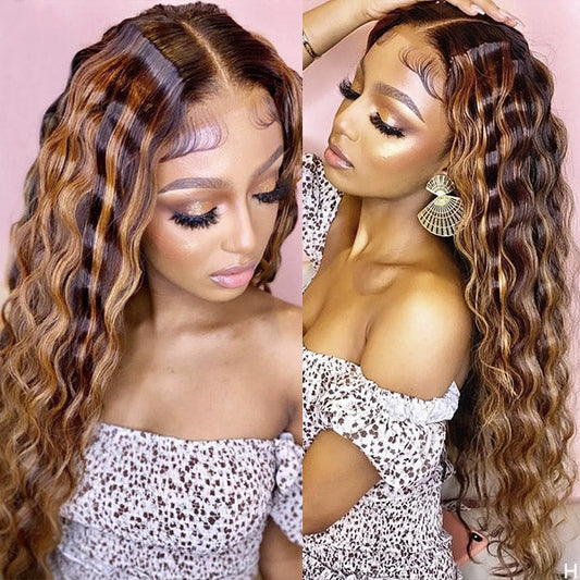 T Part Lace Wig Honey Blonde Highlighted Wig Loose Deep Wave Hair 150% Density Wig