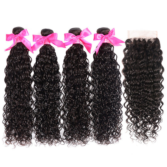 Water Wave Hair 3 Bundles With Closure Wet And Wavy Human Hair Weave Bundles With Lace Closure