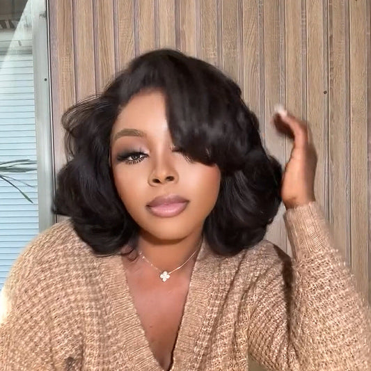 Put on & Go Layered Bob Short Wavy Glueless Human Hair Lace Wig