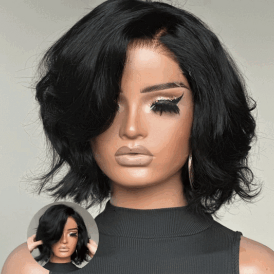 Put on & Go Side Part Layered Fluffy Bob Lace Closure Wig
