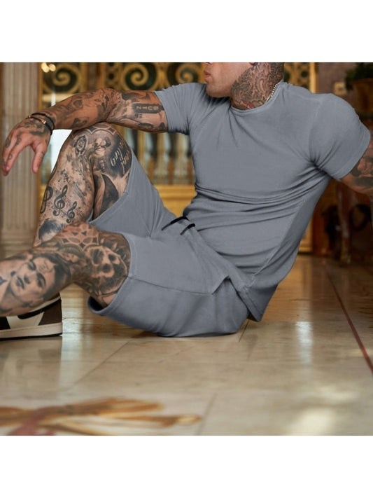 Pure Color Top And Pocket Shorts Men's Casual Suits