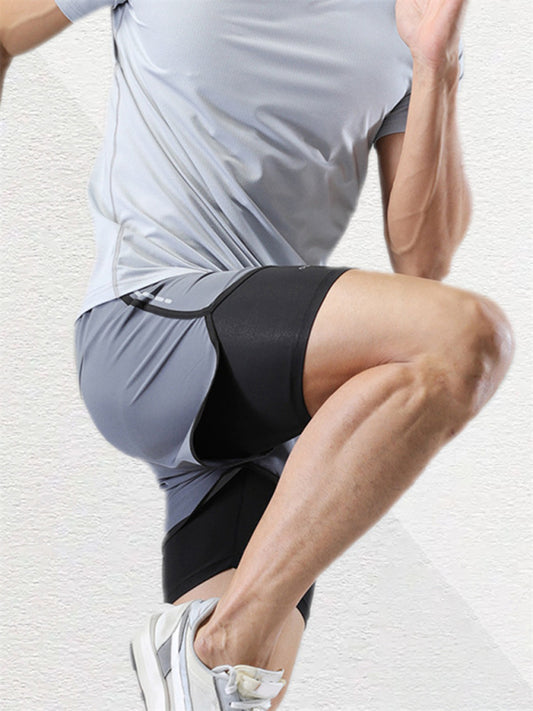Men's sports fake two-piece quick-drying double-layer basketball pants anti-slip five-point pants