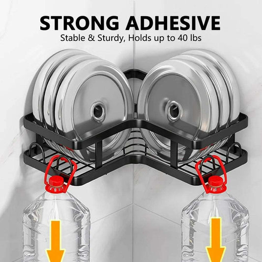 5 PCS Corner Shower Caddy Shower Organizer, 2 Tier Self-Adhesive Bathroom Organizer Shower Caddy Basketwith Soap & Toothbrush Holder, Wall Mounted Rustproof Stainless Steel Shower Rack